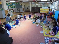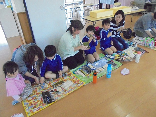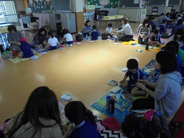 4月18日(木)、年長さんの懇談会に併せて、主活動見学と、親睦を兼ねた手巻きパーティー、親子レクリエーションを行いました。
