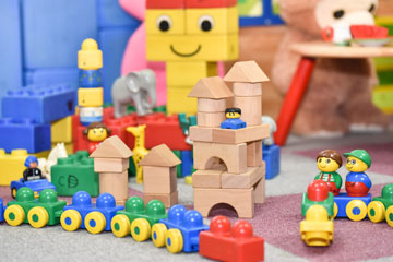 遊具は、遊び方・使い方自体を子供たちが考えて分解・組み立てができる「巧技台」や、 遊びながら文字を覚えられる文字サイコロ、 家ではなかなかこんなにそろえられない大量のブロックなど、 子供たちの想像力を刺激する遊具がいっぱいです。