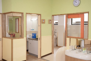 保育室内には、手洗い・調乳スペース・シャワースペースなどが設置されています。