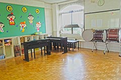 リズム室では和太鼓等の珍しい楽器をはじめとして、タンバリン・カスタネット等様々な楽器が充実しています。