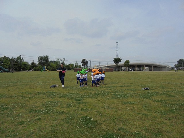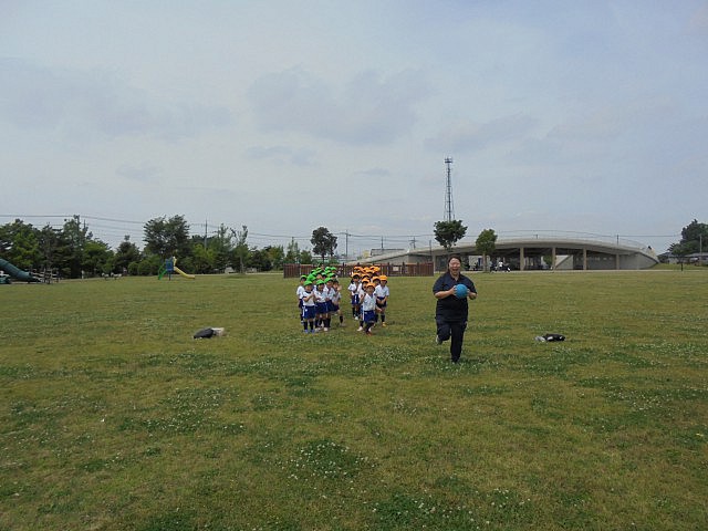 広場では、遠足でも親子クラス対抗で対戦した『ボール送りゲーム』に再挑戦![]()