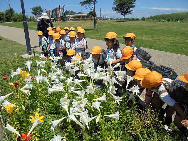 公園には色とりどりの花が咲いていました。ユリの香りをかいだり・・・DSC01093