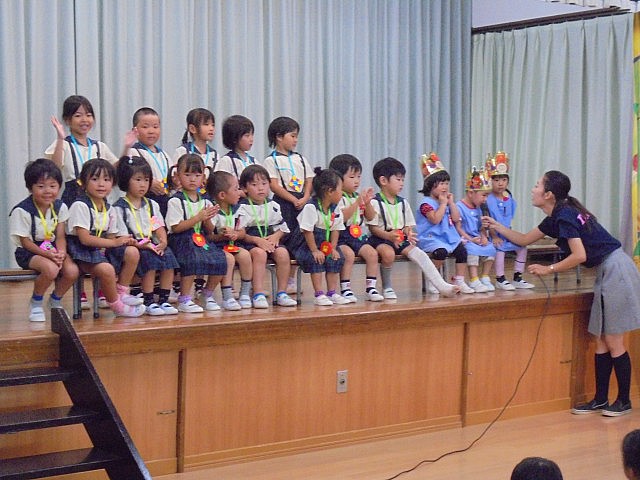 夏休み中に2階床工事を行う為に夏期保育が前倒しとなり、本日7月19日(火)に8月生まれの誕生会を行いました ファーストスクールのお友達も上手にインタビューに答えられましたよ